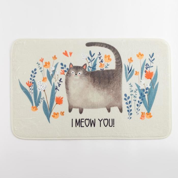Коврик для ванной Этель «I meow you», 80×50 см, велюр