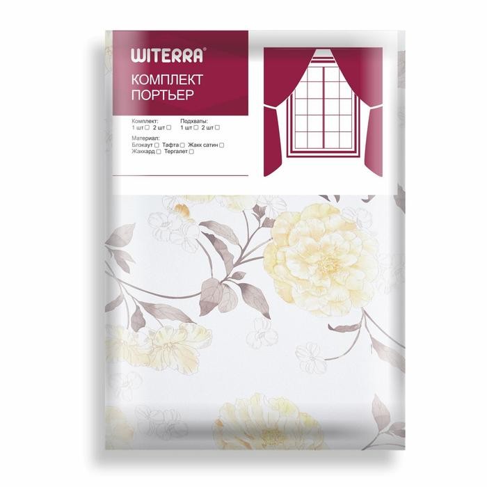 Штора портьерная блэкаут Японский пион 135×260 см, жёлтый, пэ 100%