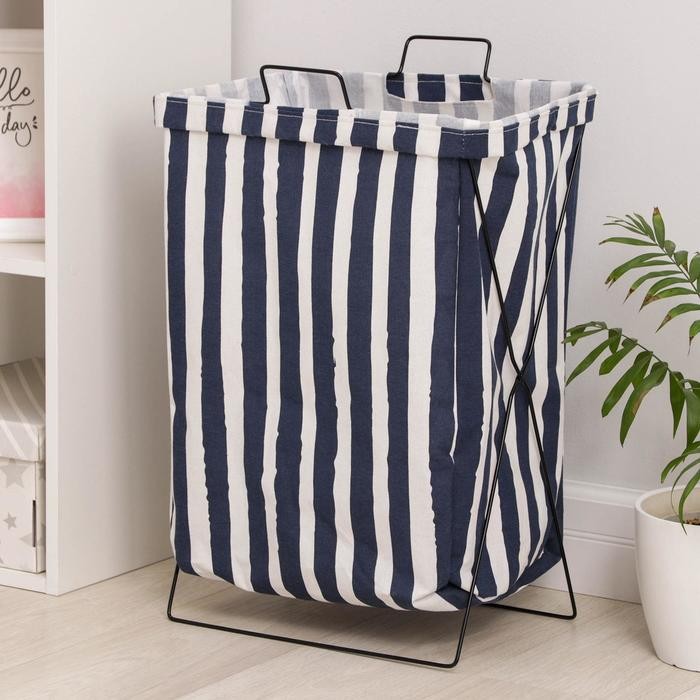 Корзина универсальная складная «Линии», 40×26×50 см, цвет бело-синий