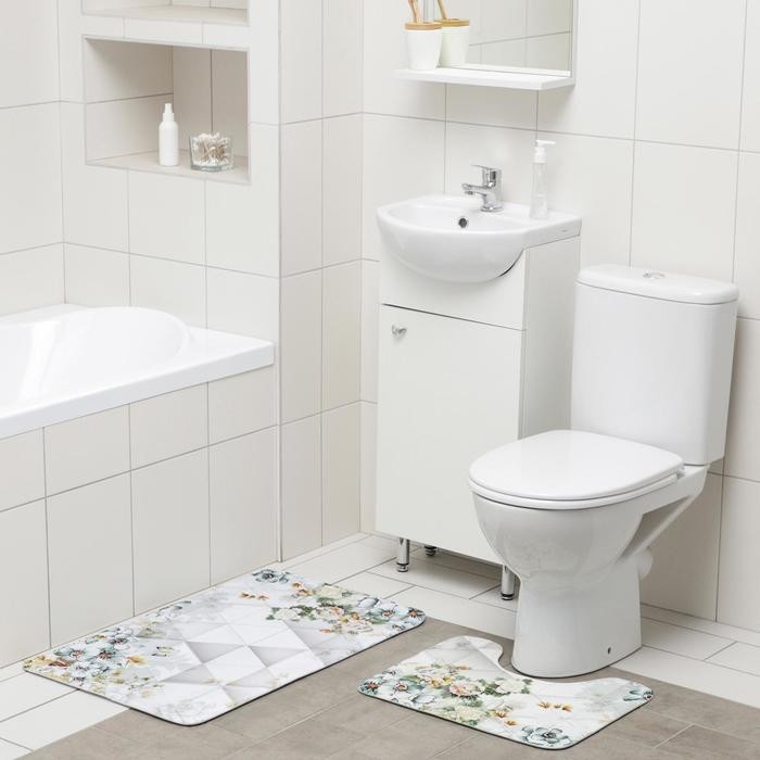 Набор ковриков для ванны и туалета Доляна «Геометрия цветов», 2 шт: 50×80, 40×50 см
