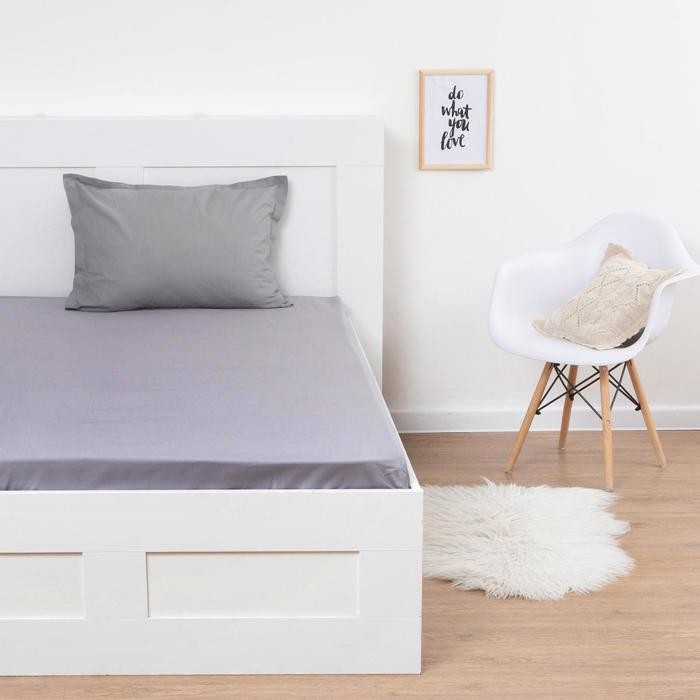 Простыня на резинке Этель 160*200*25 см, цв. серый, 100% хлопок, мако-сатин, 128 г/м²