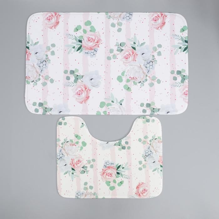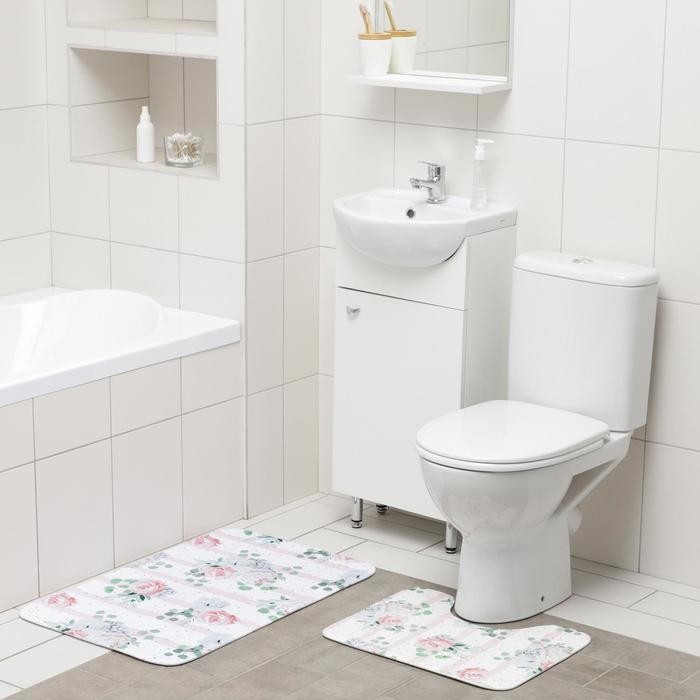 Набор ковриков для ванны и туалета Доляна «Розалия», 2 шт: 50×80, 40×50 см