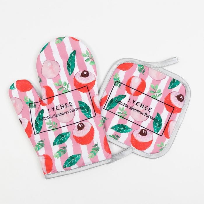 Кухонный набор Доляна «Личи» прихватка 17*17 см, варежка-прихватка 26*16 см, 100% п/э