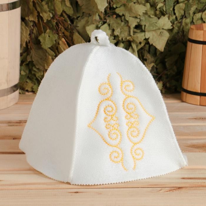 Шапка для бани с вышивкой «Узоры Азии» желтый узор