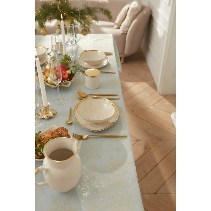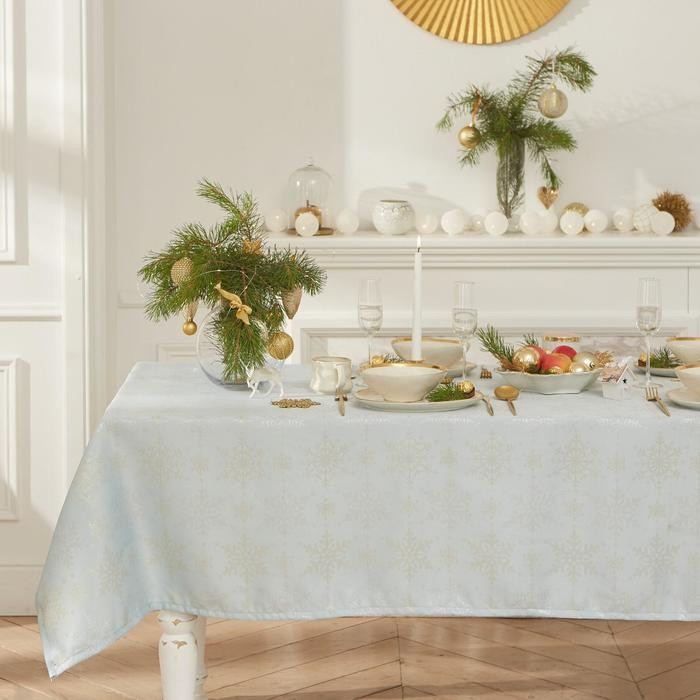 Скатерть Этель «Новый год: Снежинки» цвет голубой, 142*220 +/-3 см, 115 ±10 гр, 100% п/э