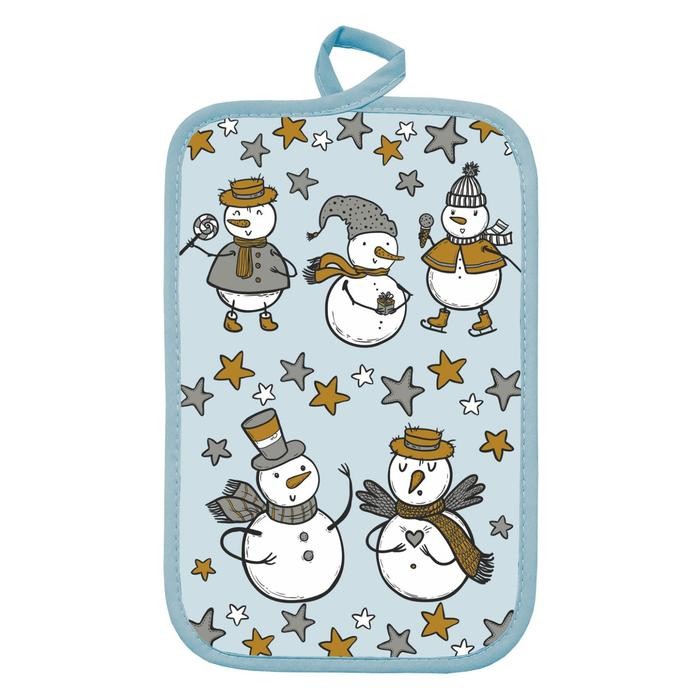 Прихватка Снеговики и елки 14×22 см, серо-голубой, хлопок 100%, 200г/м2