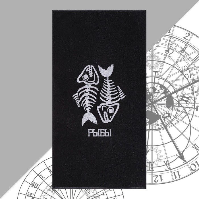 Полотенце махровое Этель «Знаки зодиака: Рыбы» чёрный, 67×130 см, 420 гр/м2, 100% хлопок