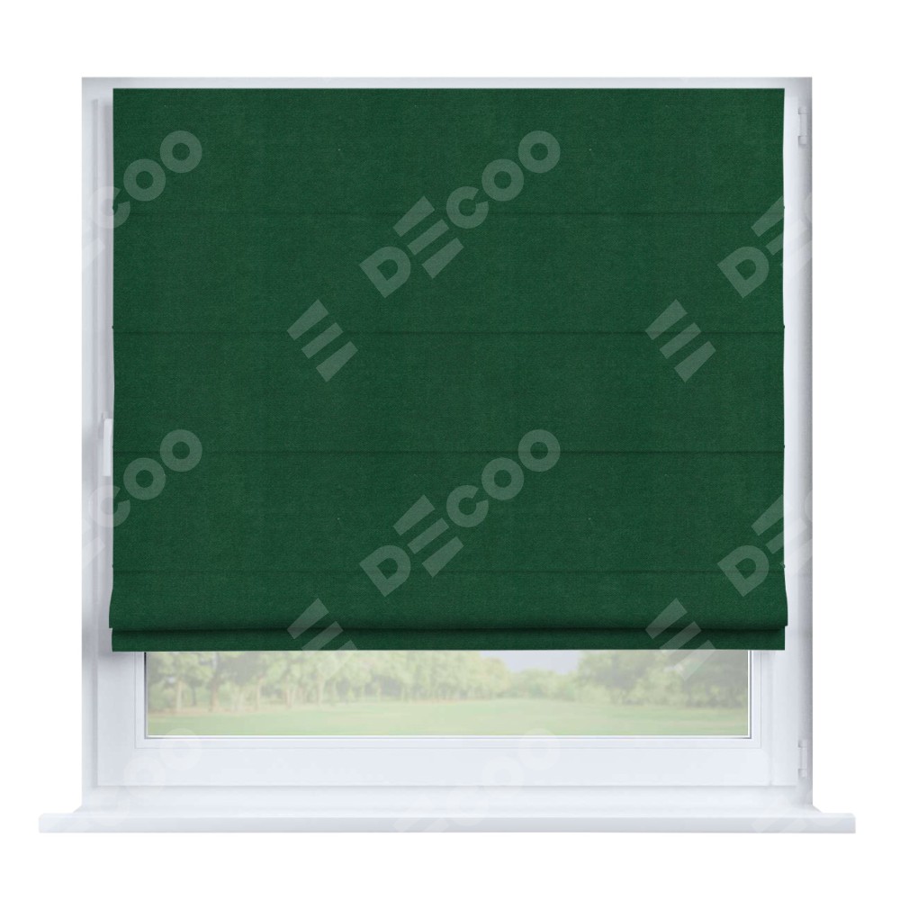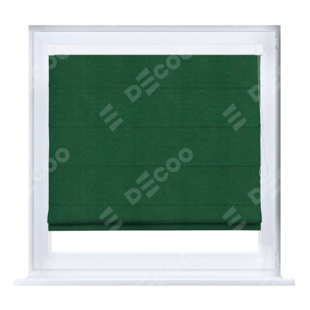 Римская штора производителя «Cortin», устанавливается на створку окна, пошита из ткани вельвет зелёный, артикул 85546. Штора шьётся по индивидуальным размерам, для данного типа римской шторы возможная ширина от 35 до 150 см., высота до 250 см.