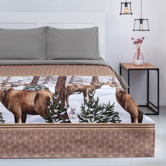 Покрывало «Этель» 2 сп Олени в зимнем лесу, 180*215 см, 100% хлопок