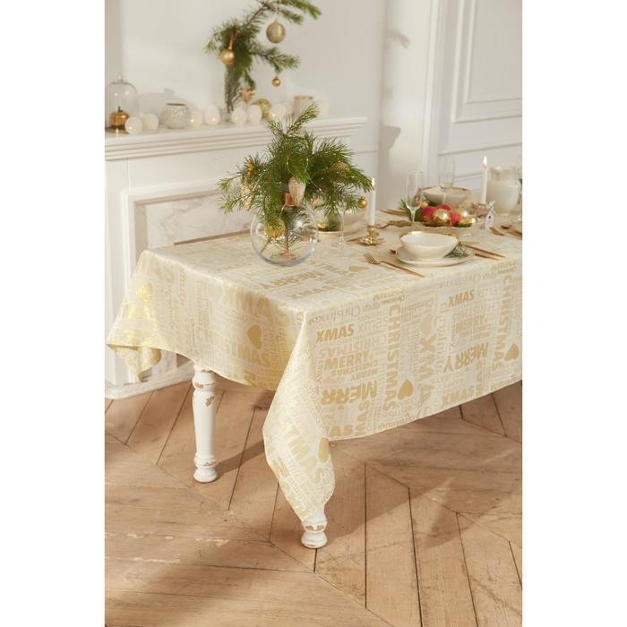 Скатерть Этель «Новый год: Merry xmas» цвет золотой, 142*110 +/-3 см, 115 ±10 гр, 100% п/э