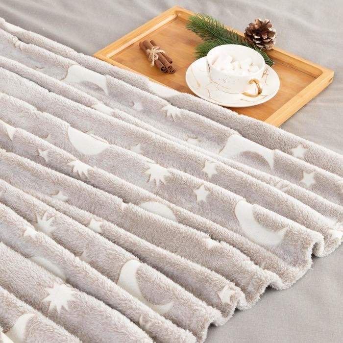 Плед светящийся в темноте Этель «Луна» 200*220 см,100% п/э, корал-флис