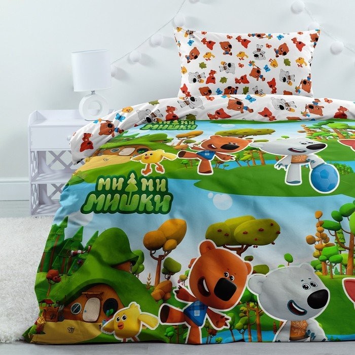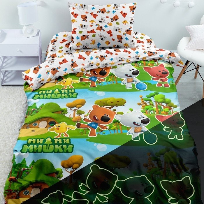 Постельное бельё 1.5сп Ми-ми-мишки Neon «Мишки на каникулах» 143×215, 150×214, 70×70−1шт поплин 105г/м хл