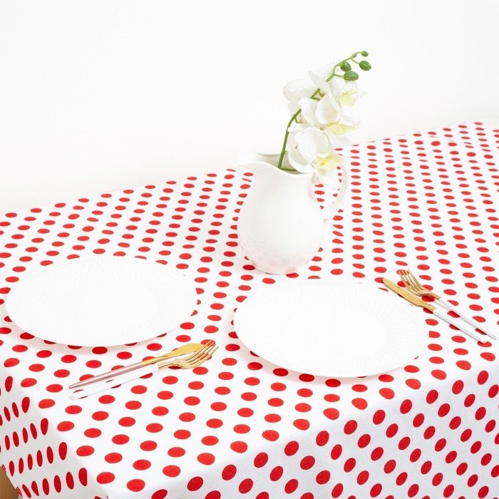 Скатерть Горох красный б/з 150×150 см, рогожка 160 гр/м2