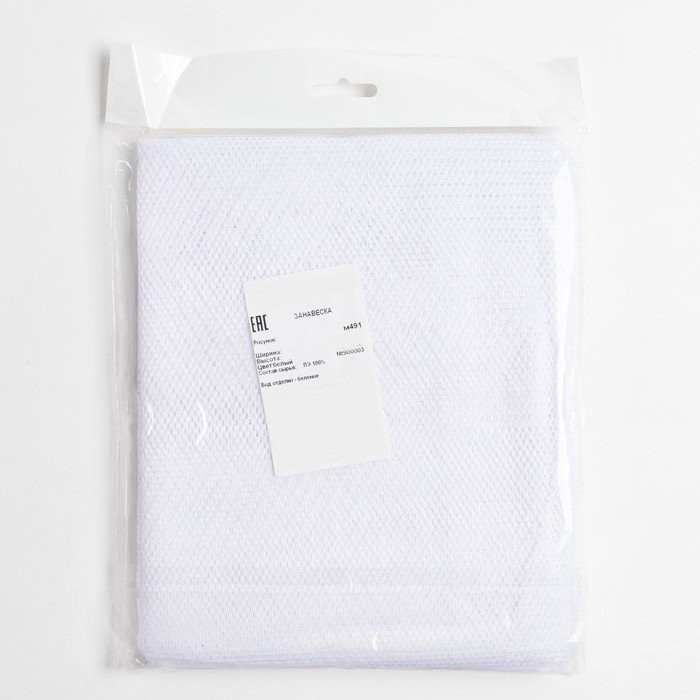 Штора кухонная без шторной ленты м491 165×160 см, белый, пэ