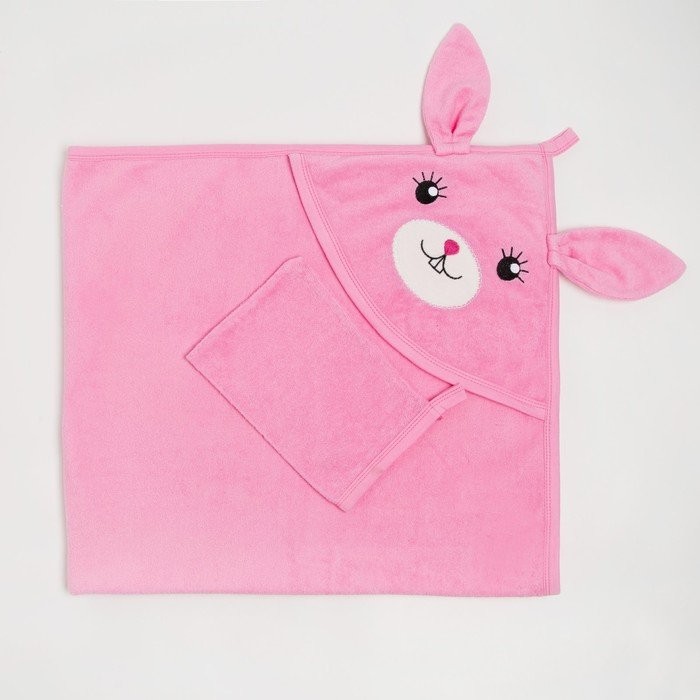 Набор для купания (полотенце уголок, рукавица) Зайка цв. Розовый 92х96см махра, хл100%