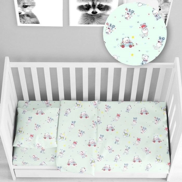 Постельное бельё детский Русский дом «Веселый транспорт мятный» 112×147, 100×150, 40х60см, бязь 120 г/м