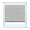 Римская штора кассетного типа, производителя «Cortin», устанавливается только на пластиковые окна и прилегает к стеклопакету, пошита из ткани лён димаут светло-серый, артикул 83025.