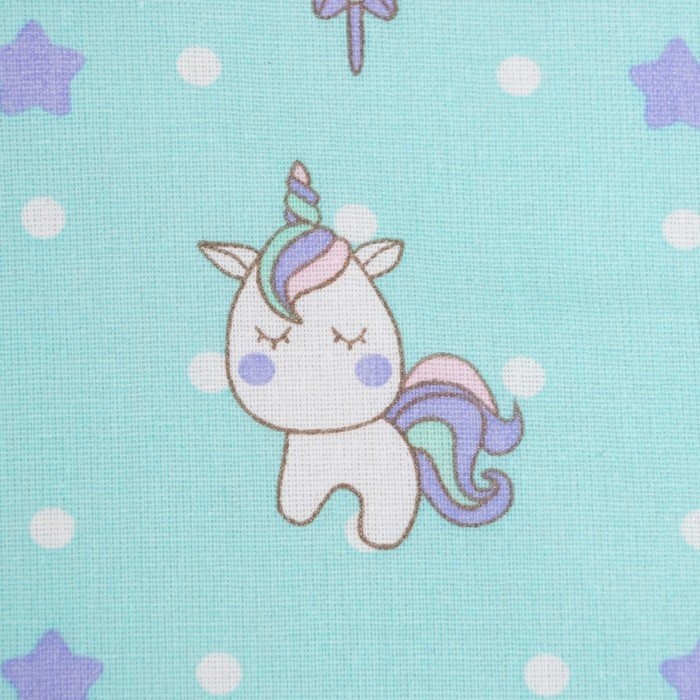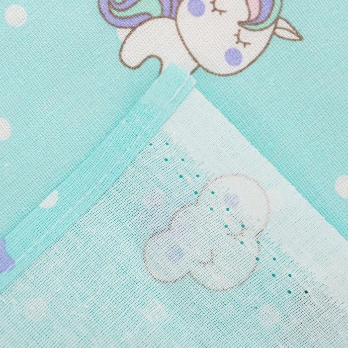 Постельное бельё детское «Единорожки», цвет бирюзовый, 112×147, 100×150, 40×60 1 шт, бязь, хл100 120 г/м