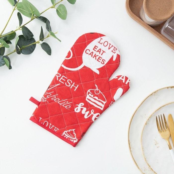 Прихватка-руковичка Мари Санна Леттеринг, красный, рогожка