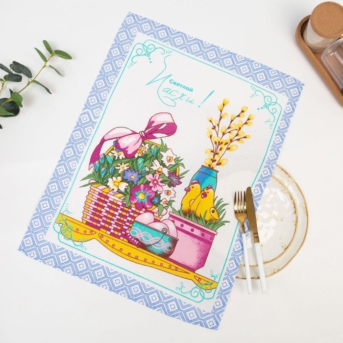 Полотенце 45×60 см, Светлая Пасха (рис.3), голубой, вафля, 160 гр/м2, хлопок 100%