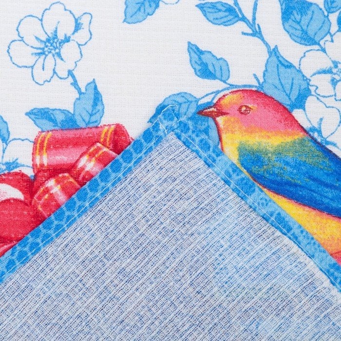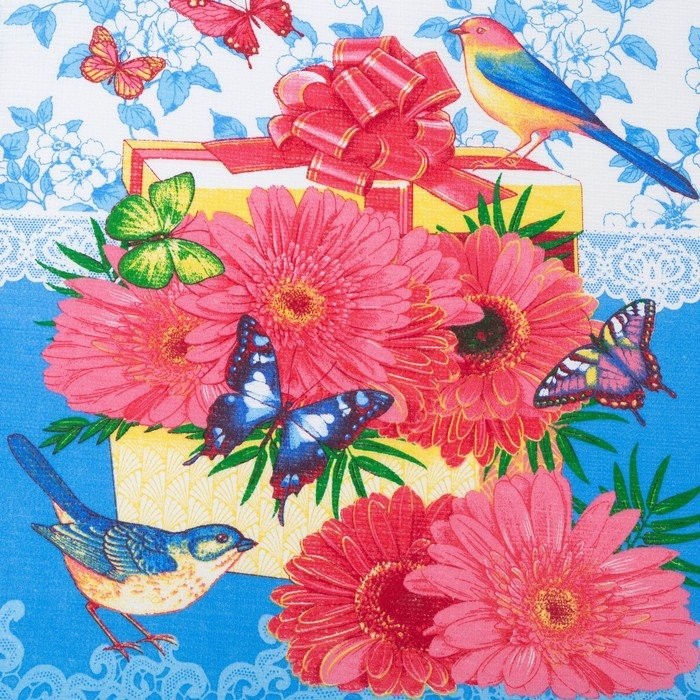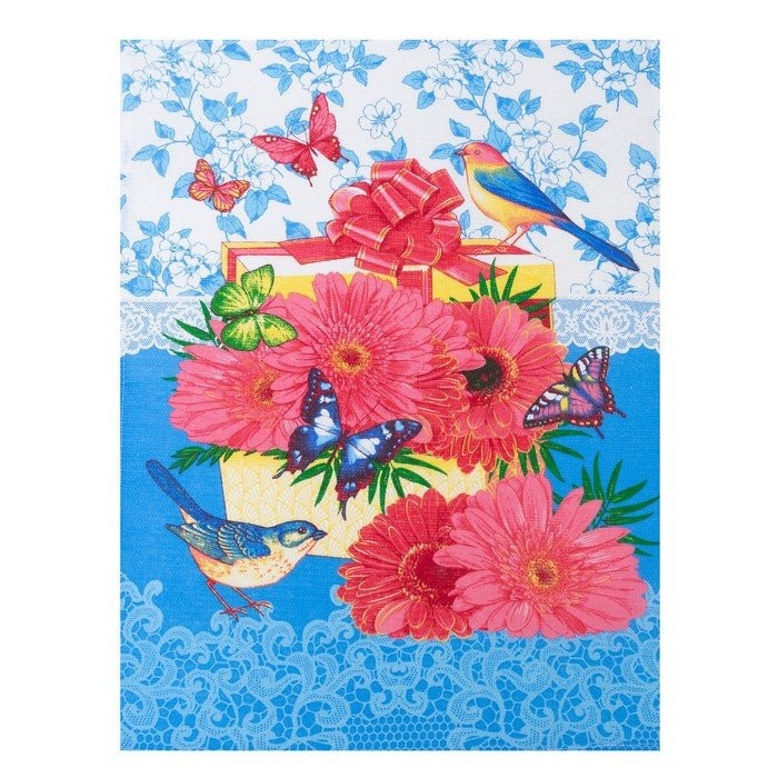 Полотенце 45×60 см, Герберы, голубой, вафля, 160 гр/м2, хлопок 100%