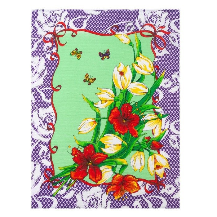 Полотенце 45×60 см, Цветы, сиреневый, вафля, 160 гр/м2, хлопок 100%