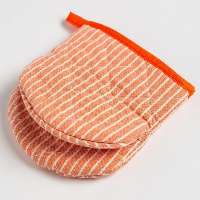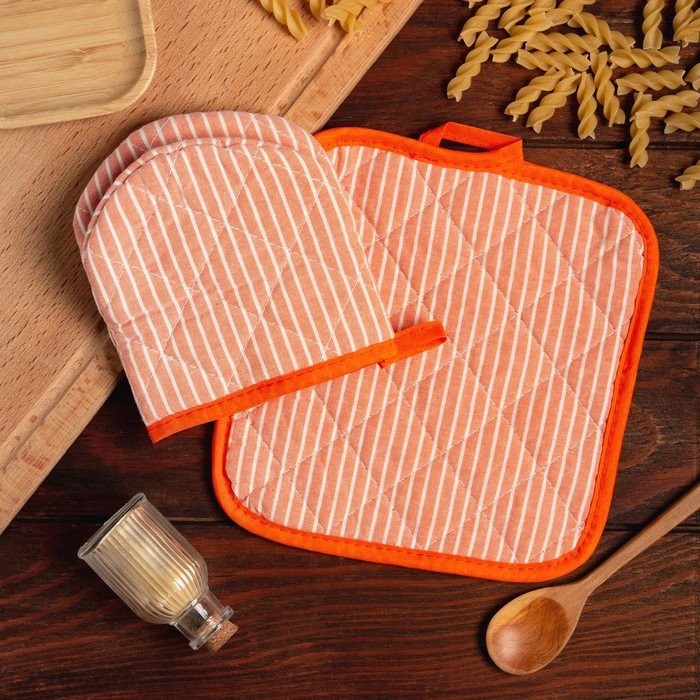 Кухонныйнабор Доляна «Полосы», прихватка20х20см, варежка12х15см, персик, 50%п/э, 50%хл