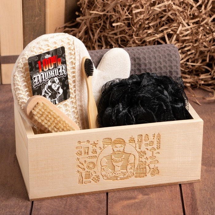 Набор подарочный Этель «100% мужик» полотенце и аксс (6 предм)