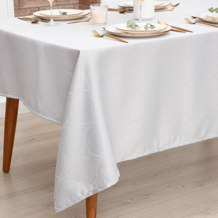 Скатерть Этель «Круги» цв.серебро, 142*220 +/-3 см, 115 ±10 гр,100%