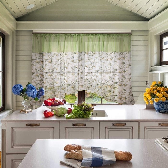 Комплект штор для кухни Нарцисс 300×160 см, зеленый, 100% п/э