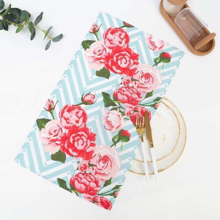 Полотенце 35×60 см, Зигзаг, бирюза, вафля, 160 гр/м2, хлопок 100%