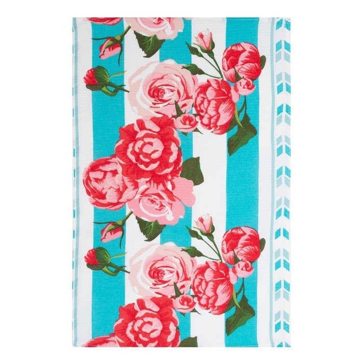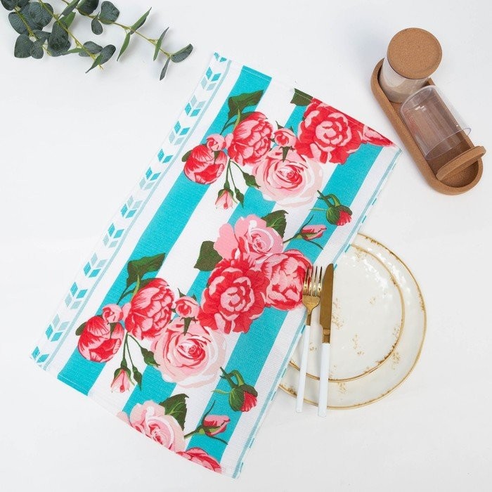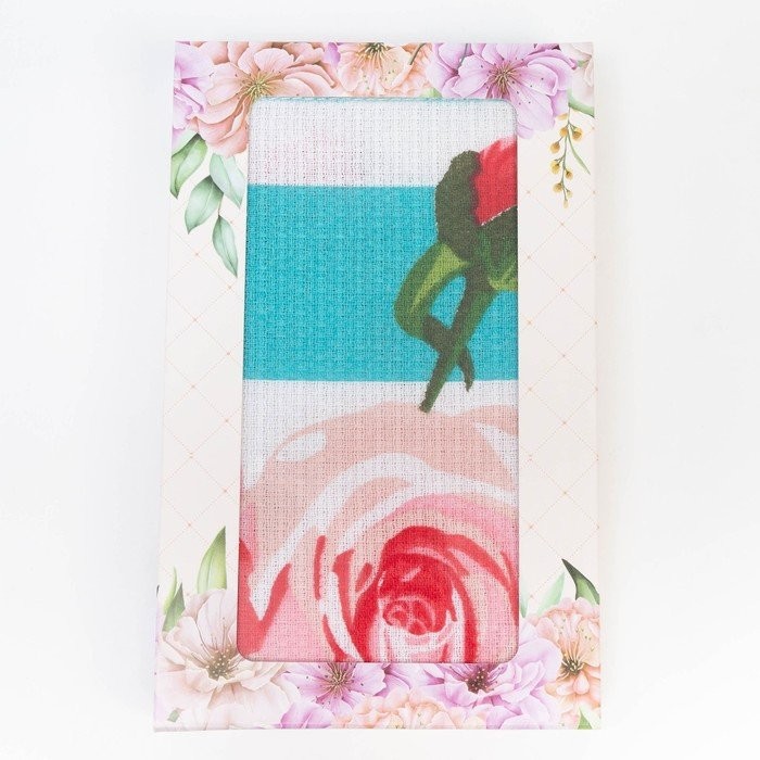 Полотенце в коробке 35×60 см, Полоса, бирюза, вафля, 160 гр/м2, хлопок 100%
