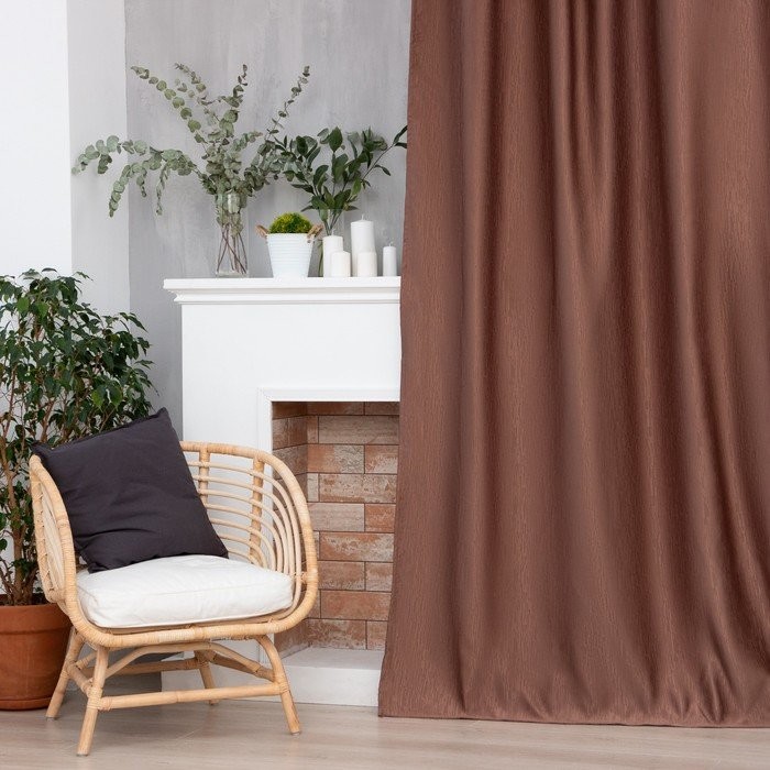Штора портьерная Этель «Фактура"цв.коричневый,на шторн.ленте 250*265 см,100% п/э