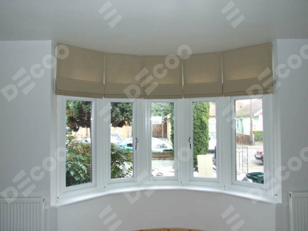 Римская штора «Кортин» на эркерное окно из любой ткани предоставлена в следующих характеристиках: