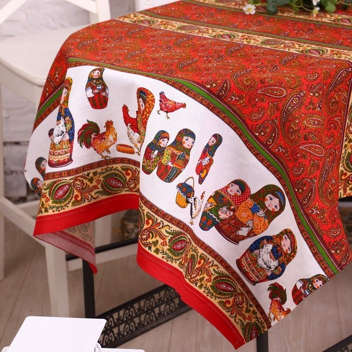 Скатерть 110×150 см «Матрешка», красный, рогожка, хл 100%