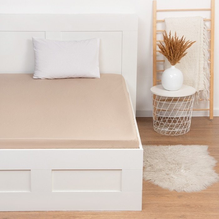 Простыня на резинке «Этель» 140х200×25 см, бежевый, 100% хлопок, перкаль