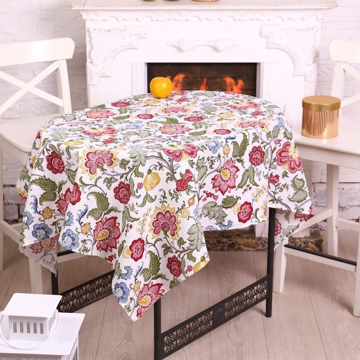 Скатерть 150×150 см «Цветочный узор», рогожка, хлопок 100%