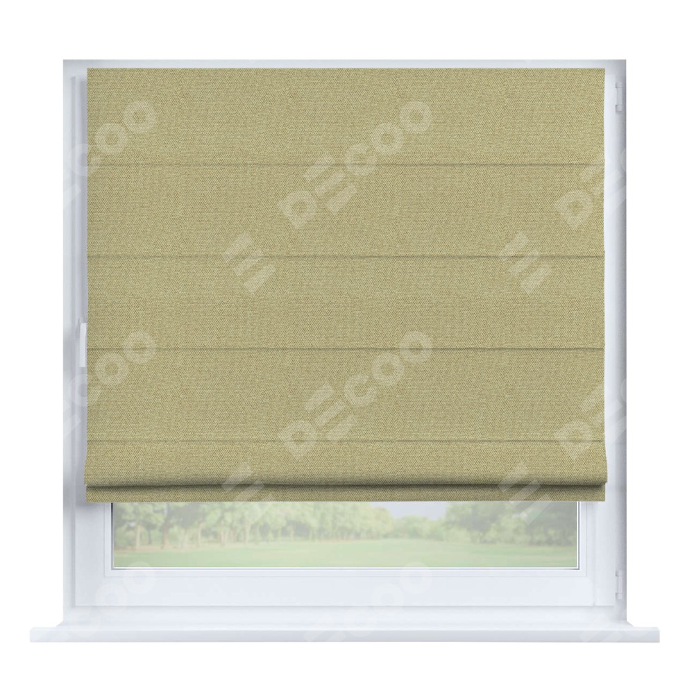 Римская штора производителя «Cortin», устанавливается на створку окна, пошита из ткани лён димаут песочный, артикул 16239. Штора шьётся по индивидуальным размерам, для данного типа римской шторы возможная ширина от 35 до 150 см., высота до 250 см.