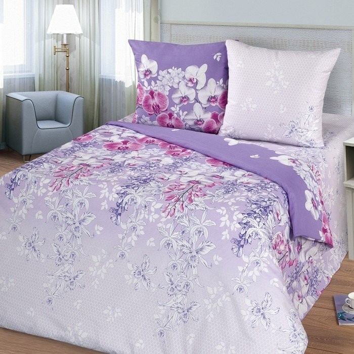 Постельное бельё евро Миланика Орхидеи 200х217см, 217×240 см, 70х70см 2 шт, бязь 125г/м, хлопок 100%