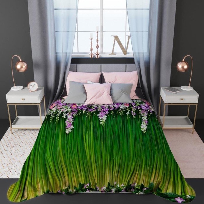 Покрывало стеганое «Цветочный стебель», размер 200×220 см