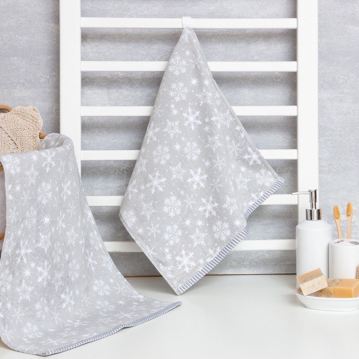 Полотенце махровое LoveLife «Снежинки», 40*65 см, цв.серый, 100% хлопок, 350 г/м2