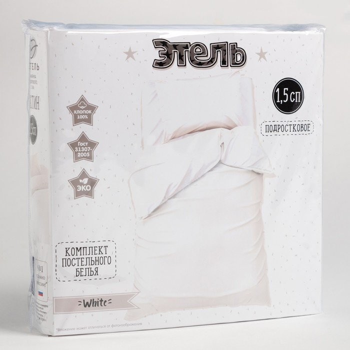 Постельное бельё Этель 1,5 сп «White» 143×215 см, 150×214 см, 50×70 см -1 шт, 100% хлопок, сатин