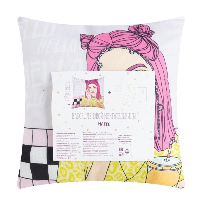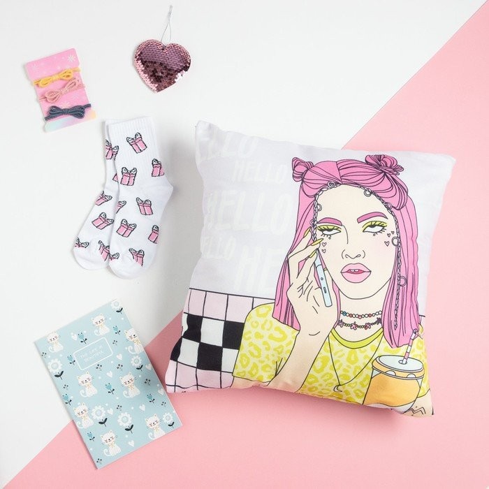 Подарочный набор «Hello» подушка-секрет, 40×40 см и аксессуары