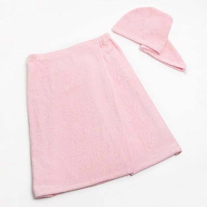 Набор для сауны Экономь и Я: полотенце-парео 68*150см + чалма, цв.св-розовый,100%хл, 320 г/м2