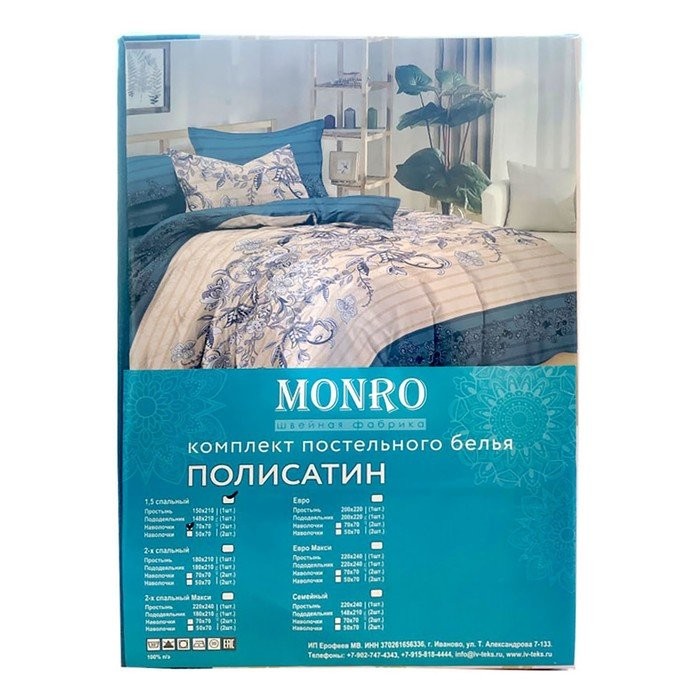 Постельное бельё Monro Евро 200×210, 200×210, 70х70см 2шт полисатин 80г/м, пэ100%
