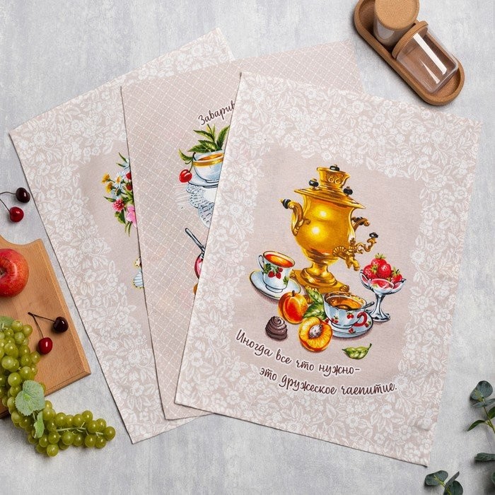 Набор полотенец в коробке «Дружеское чаепитие» 45×60 см 3шт, рогожка, 170 гр/м, хлопок 100%