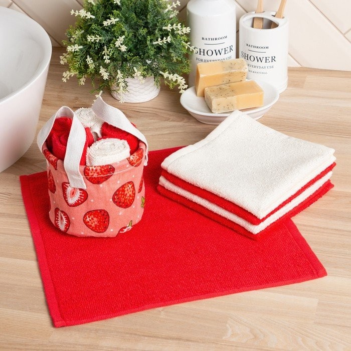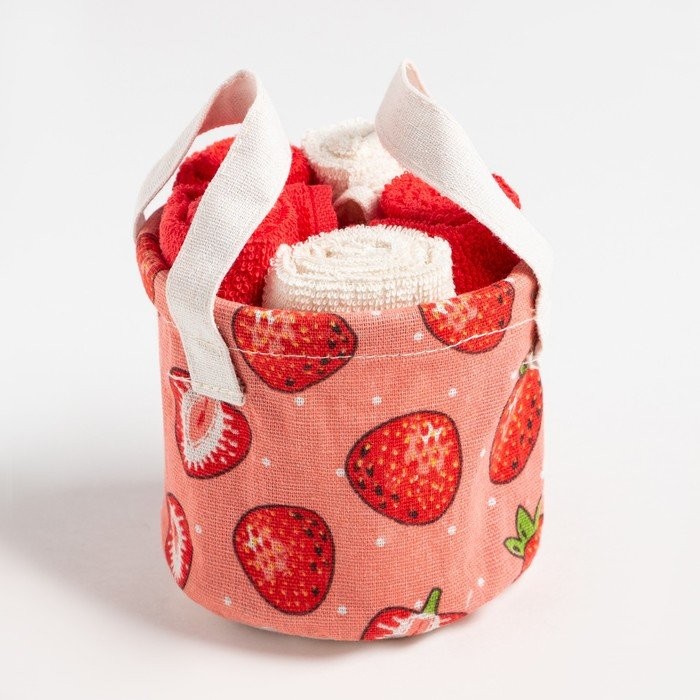 Набор салфеток махровых универсальных в корзинке Этель «Клубника"30*30см-5шт,100% хл,340г/м2