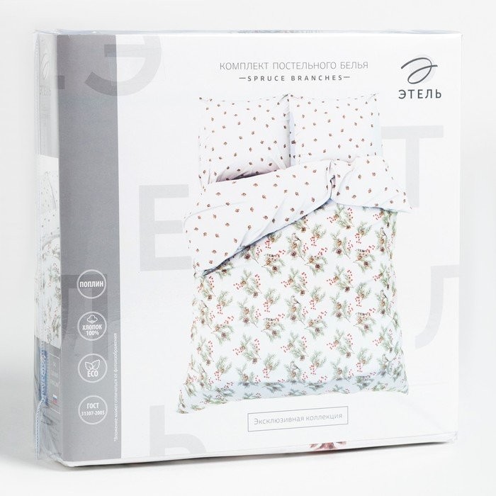 Постельное бельё Этель Дуэт Spruce branches 143×215 см -2 шт, 220×240 см, 70×70 см -2 шт, поплин 125 г/м2