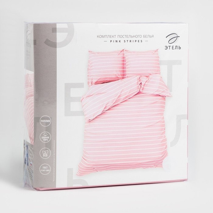 Постельное бельё Этель Евро Pink stripes 200х217см, 220х240см, 70х70см-2 шт, 100% хлопок, поплин