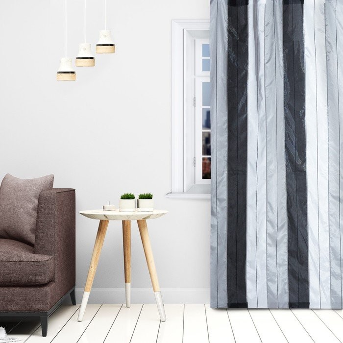 Тюль Этель «Гамма» серый 190*270 см, (вертикальная полоса) б/утяжелителя, 100% п/э